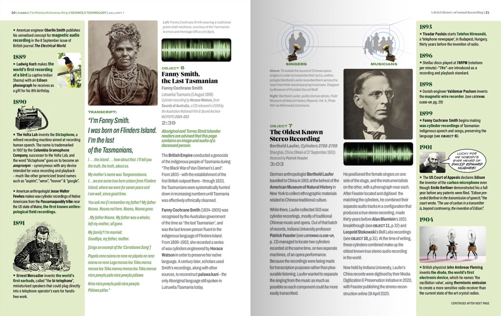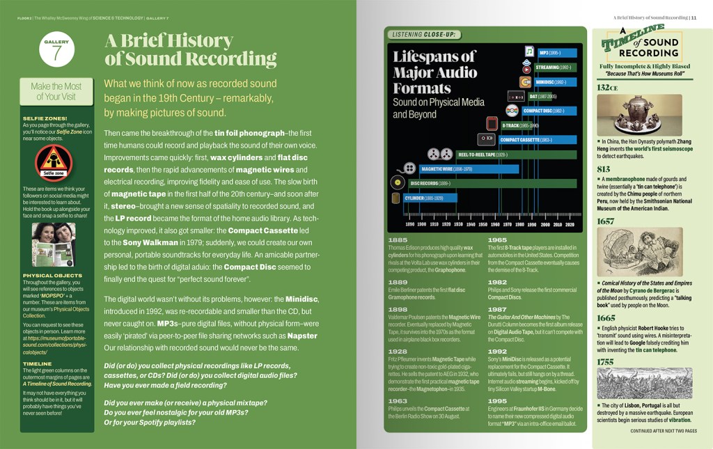 Ten years in the making, this 120-page FULL COLOUR book covers the history of sound recording from our museum’s unique perspective, a guide to 36 sound recordings from our Permanent Collection of Sounds, dozens of photos of our Physical Objects Collection, a Timeline of Sound Recording, and 30+ Listening Close-Up essays–all to bring you a history that’s deeply researched and highly unconventional.