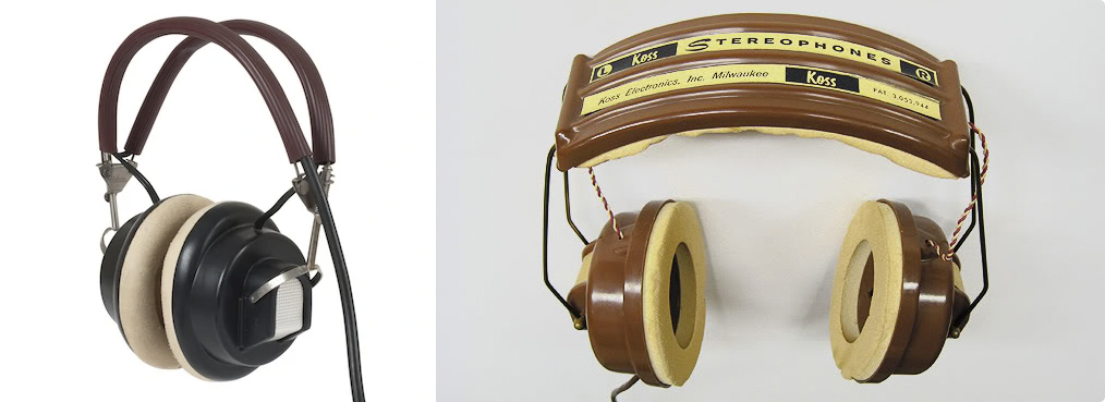 We would be equally happy to own either a pair of the first stereo headphones ever made (below left) or their infinitely cooler looking successor.
