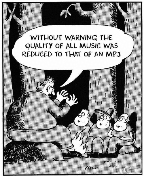 The MP3 opened the door to consumers agreeing to a loss of audio quality and an acceptance of higher personal maintenance or personal due diligence in terms of being able to have a decent listening experience; wireless headphones need their batteries charged, Bluetooth devices need to properly pair up with our media players, inconsistent WiFi bandwidth adds awkward pauses and buffering to what used to be an uninterrupted listening experience – yet these new devices are marketed to us as perfect solutions when they certainly are not.