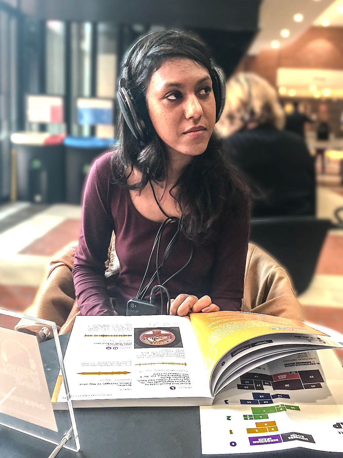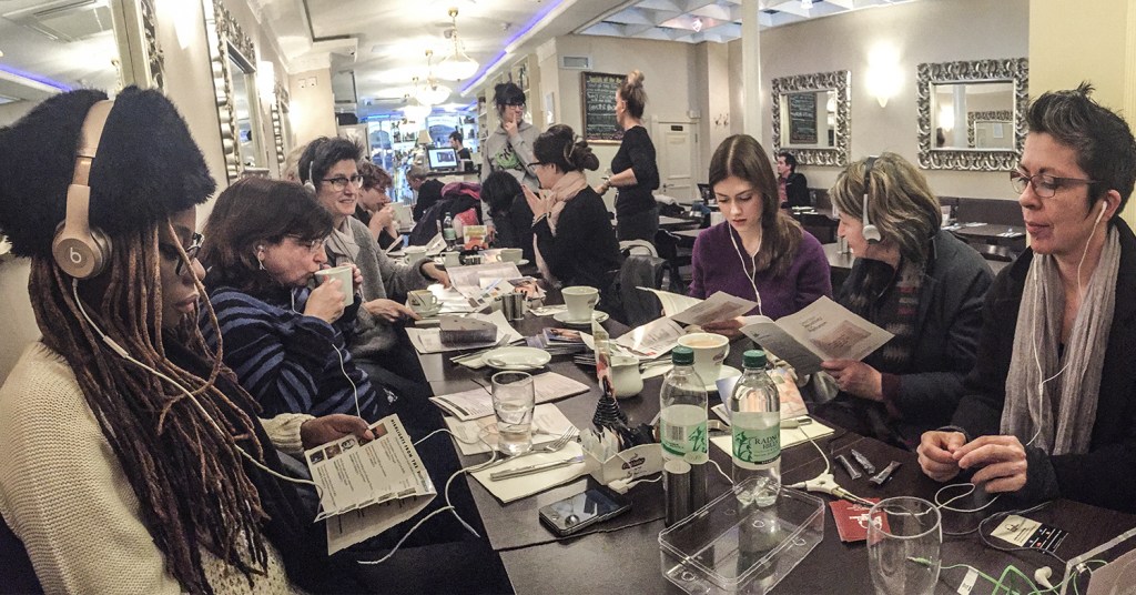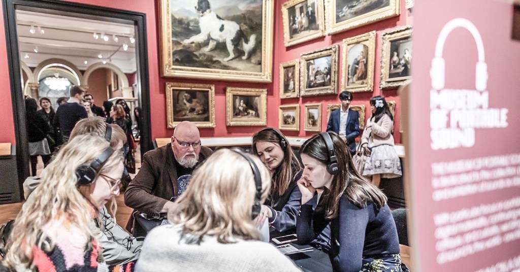 Depending on the size of your group, we can sit together at a table, everyone brings their own (wired) headphones, and you take turns passing around the museum’s mobile and Gallery Guide book, choosing your own path through our sound collection.