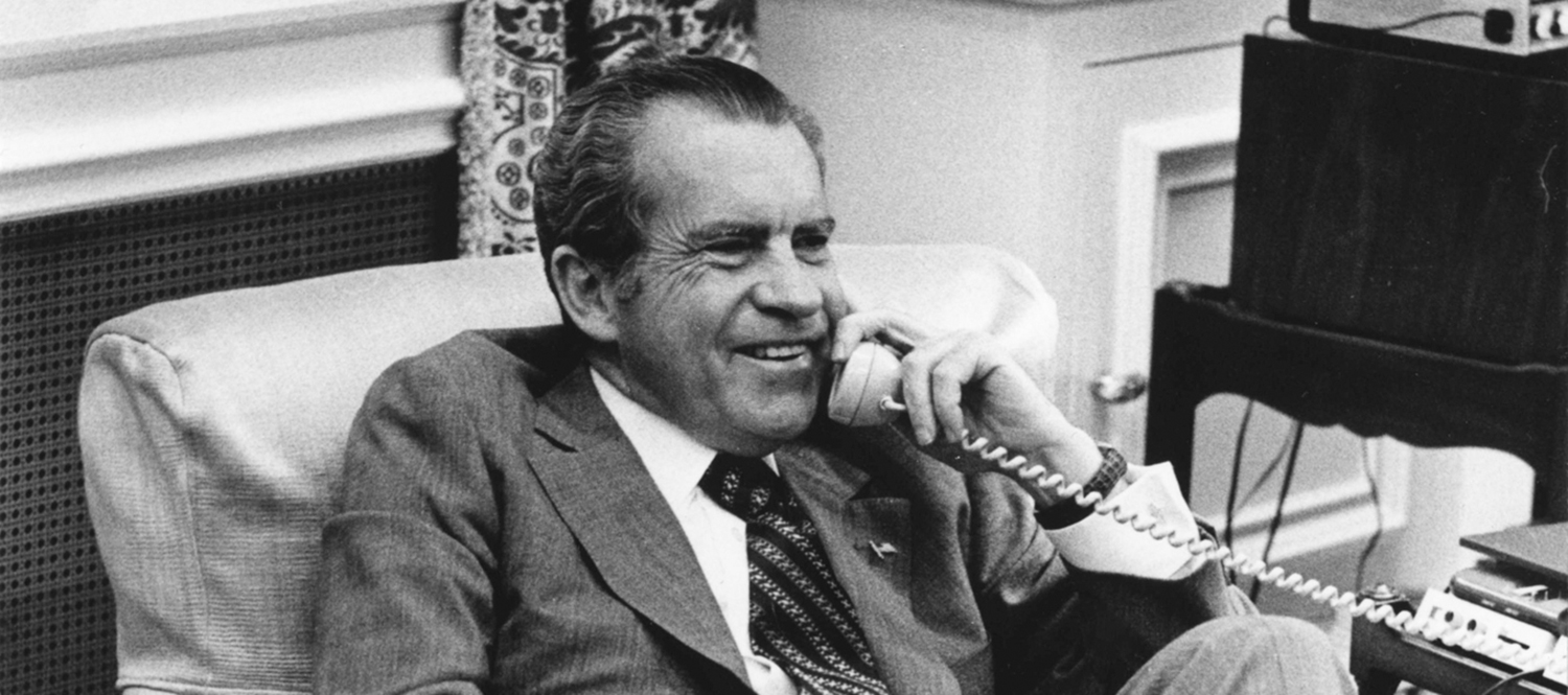 As difficult as it might be to believe, Republican US president Richard M. Nixon was initially reluctant to tape record the events of his day-to-day work as president of the United States. In fact, while we tend to think of him as the only president to do so, he wasn’t even the first: allegedly Franklin D. Roosevelt had a microphone hidden in an Oval Office lamp, and Dwight D. Eisenhower may have taped some selected conversations; both John F. Kennedy and Lyndon Johnson made extensive but selective recordings of specific events – Kennedy with a Dictaphone, and Johnson with a recording system similar to (but smaller, and less technologically advanced than) Nixon’s eventual setup.