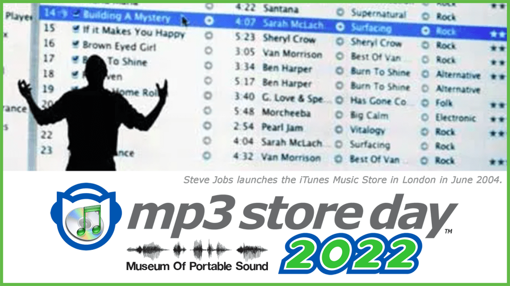 The Museum of Portable Sound invites you to join us for #MP3StoreDay every 28 April – our annual day of remembrance and unpacking of the MP3’s legacy.